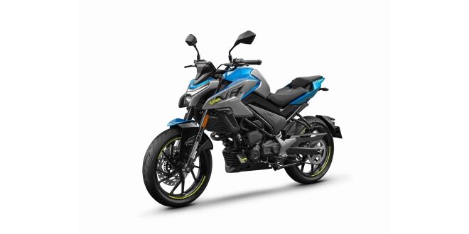 De CFMOTO 125NK is verkrijgbaar in de kleuren Zephyr Blue en Gem Black.