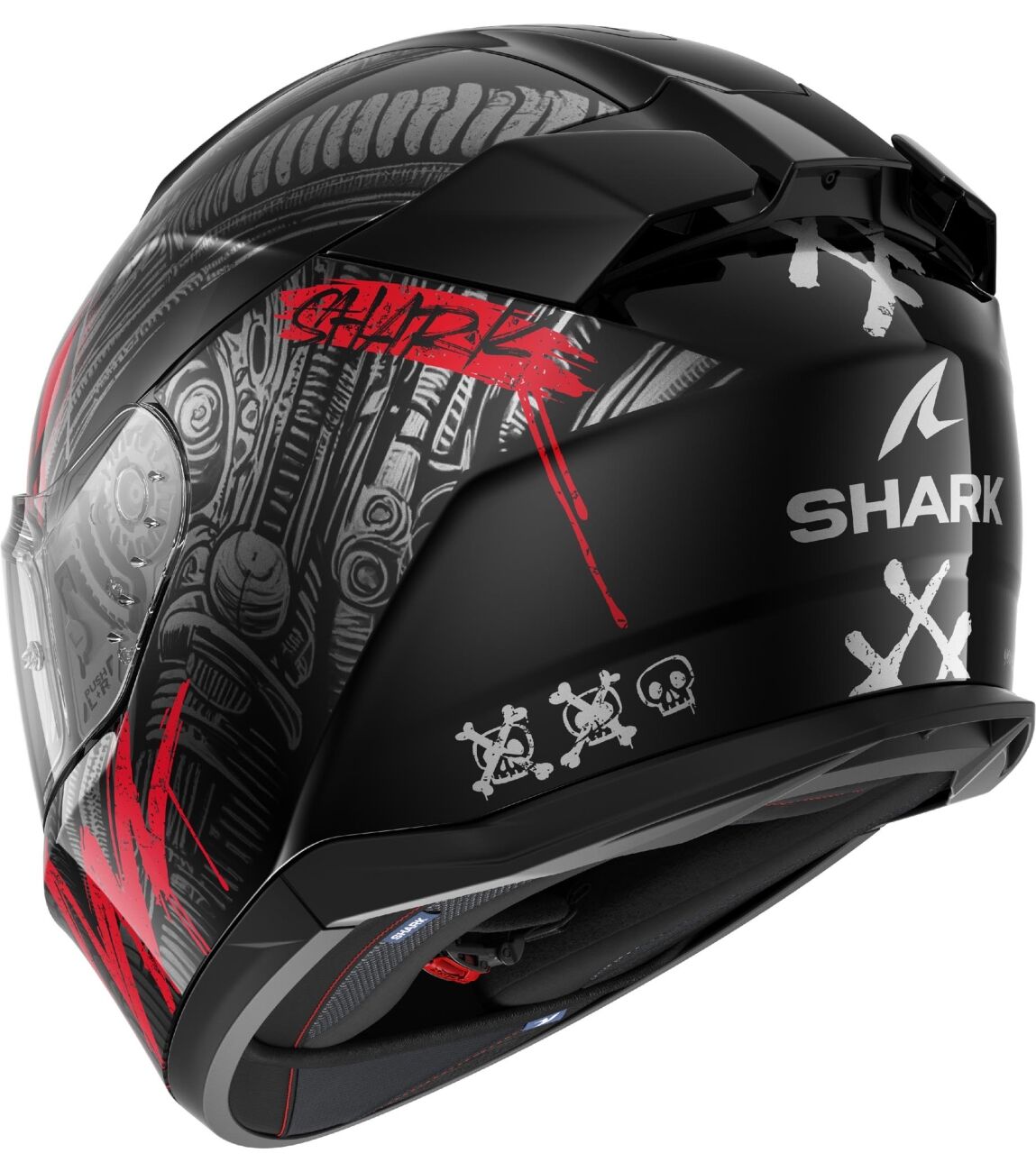 De Shark D-Skwal 3 overtreft de strenge eisen van de ECE 22-06 norm dankzij zijn high-performance bouw en zijn standaard perfect geïntegreerde voorzieningen. Met zijn agressieve lijnen die allemaal samenkomen op de aero spoilers ziet de nieuwe D-SKWAL 3 er nog dynamischer uit dan zijn voorganger. De perfecte uitrusting voor jouw rijplezier! Shark gebruikte digitale CFD (Computational Fluid Dynamics) om een aerodynamisch profiel te ontwikkelen dat optimale stabiliteit en ventilatie biedt, ongeacht de snelheid.
